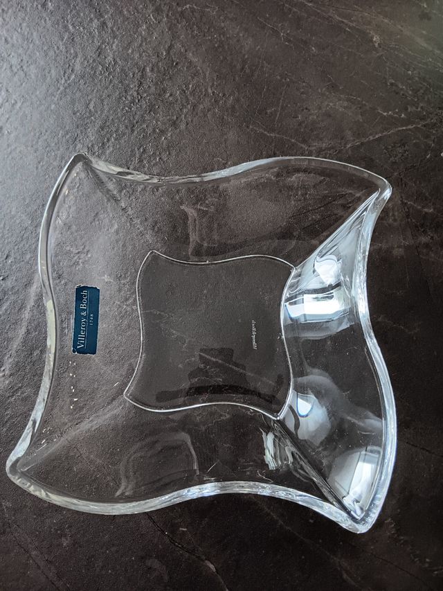 In perfette condizioni, portadolci o altro in cristallo, marca Villerox & Boch, dimensioni 15x15