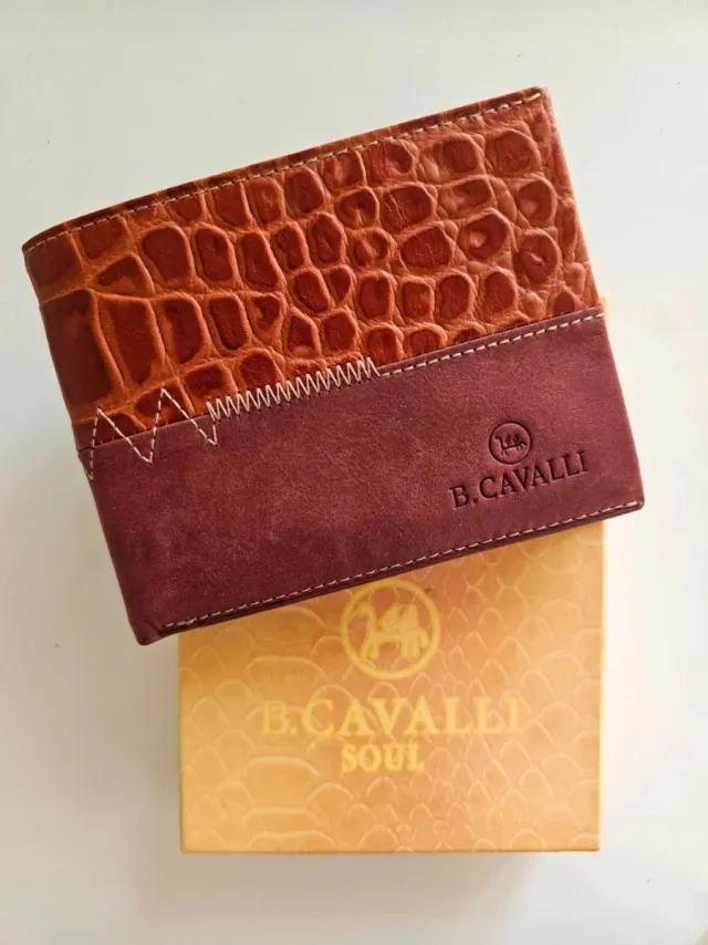 Portafogli B. Cavalli uomo pelle marrone e rossa