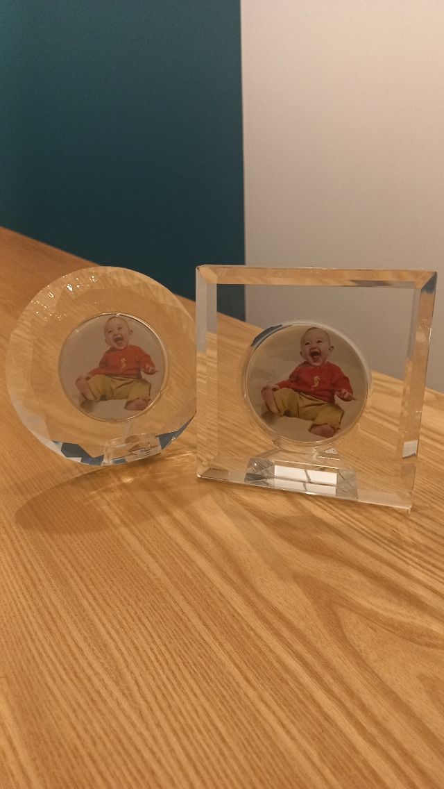 Portafoto cristallo. 2 pezzi. quadrato e tondo