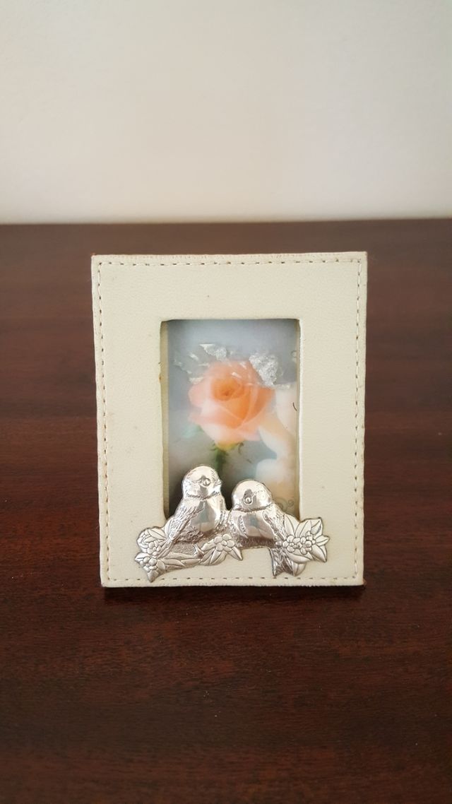 Portafoto con uccellini in lamina argento.Nuovo mai usato