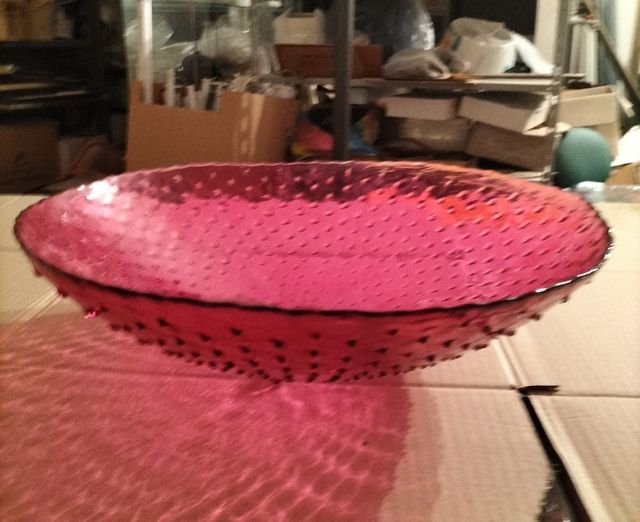 Portafrutta in vetro fuxia. Leggermente più grande rispetto alla foto. Nuovo senza cartellino