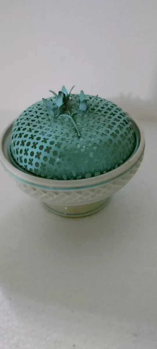 Dettagli del prodottoElegante portagioie vintage con un design traforato e decorazioni floreali.