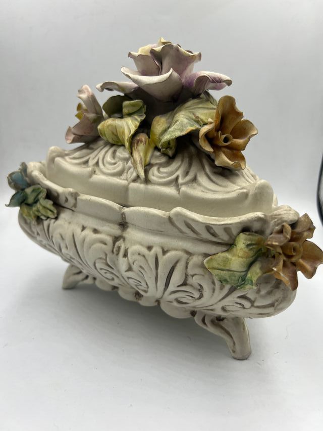 Dettagli del prodottoPortacioccolatini portagioie vintage ceramica V Bassano triangolo rose