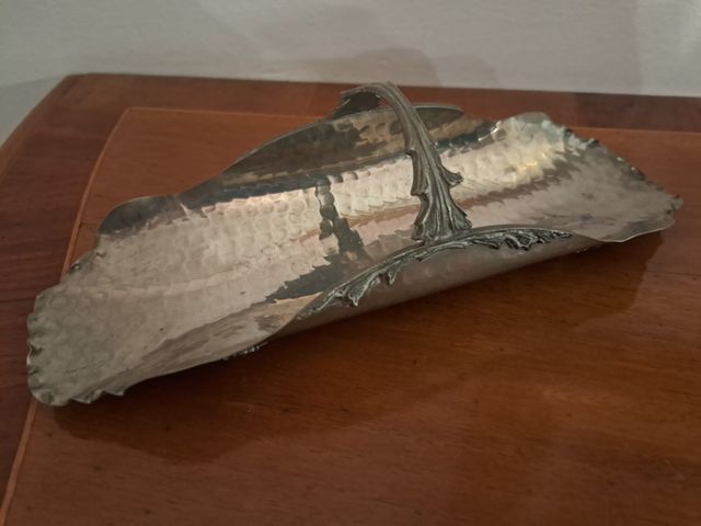 Portagrissini in peltro lavorato a mano, vintage anni 70 28,5x9 cm