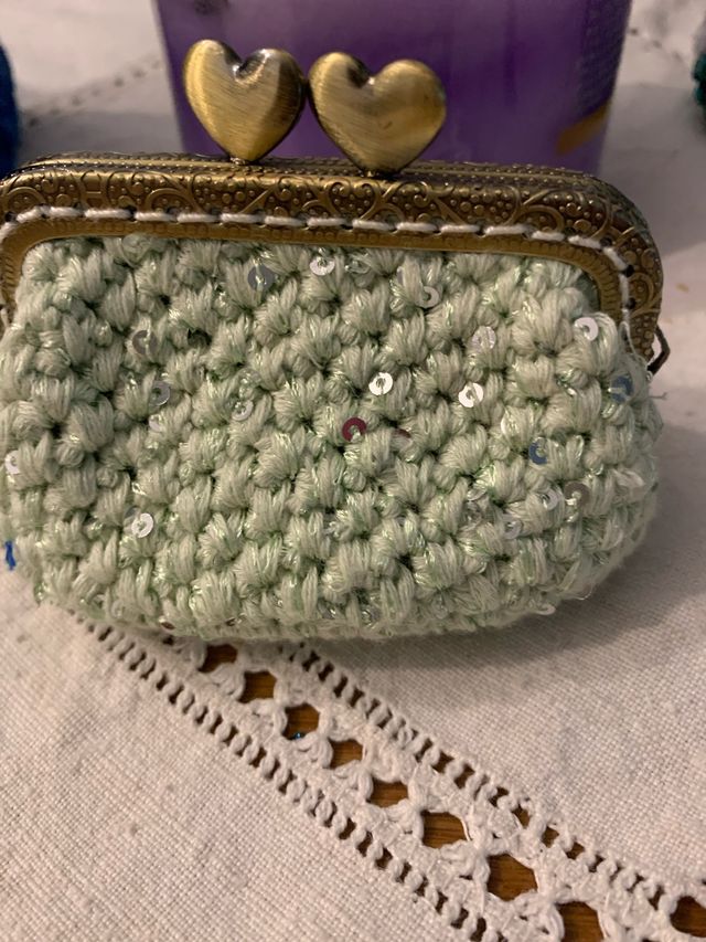 Portamonete uncinetto fatto a mano con paillettes