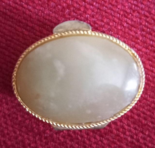 Scatoletta ovale portapastiglie vintage Dorata con pietra sopra Dim. 35x 25 mm H= 16 mm