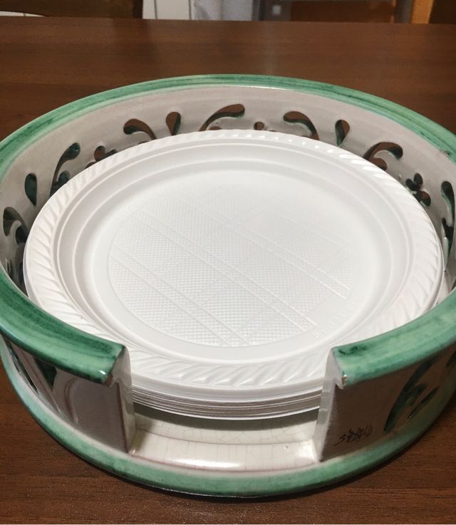 Portapiatti intarsiato di colore verde!Unico difetto una piccola scheggiatura!!