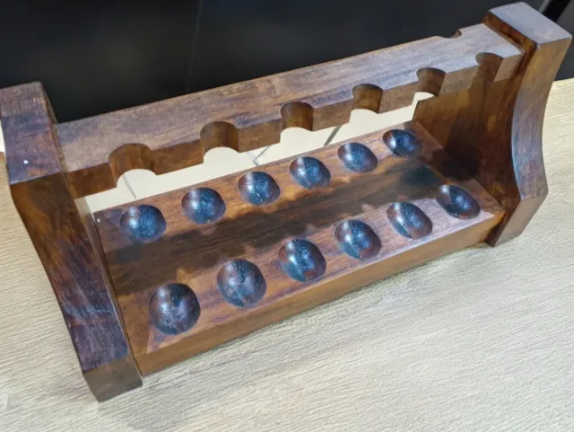 Portapipe in legno da 12 posti colore noce scuro. Dimensioni 31 cm larghezza x 14 cm altezza x 13 cm profondità .