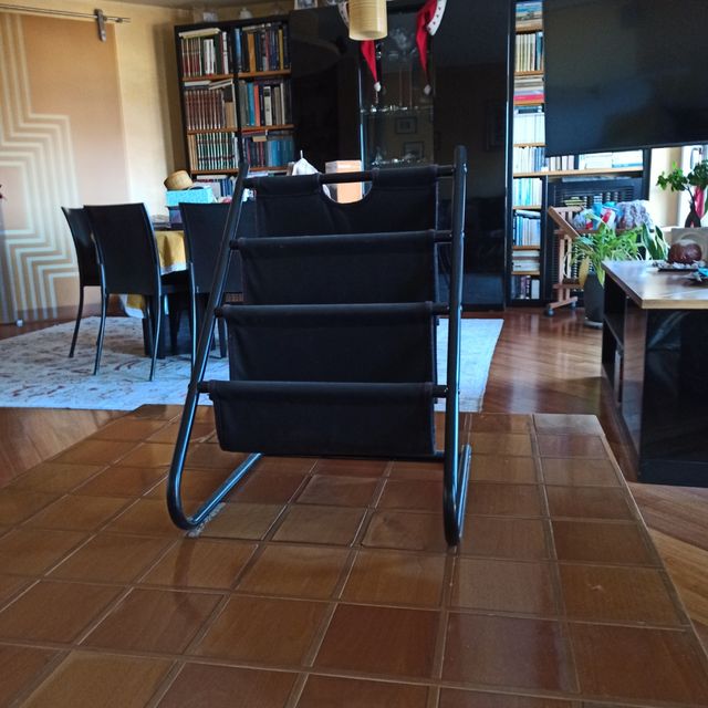 Dettagli del prodottovecchio portariviste smontabile in tessuto robusto e struttura metallica di sostegno, colore nero Misure del prodotto