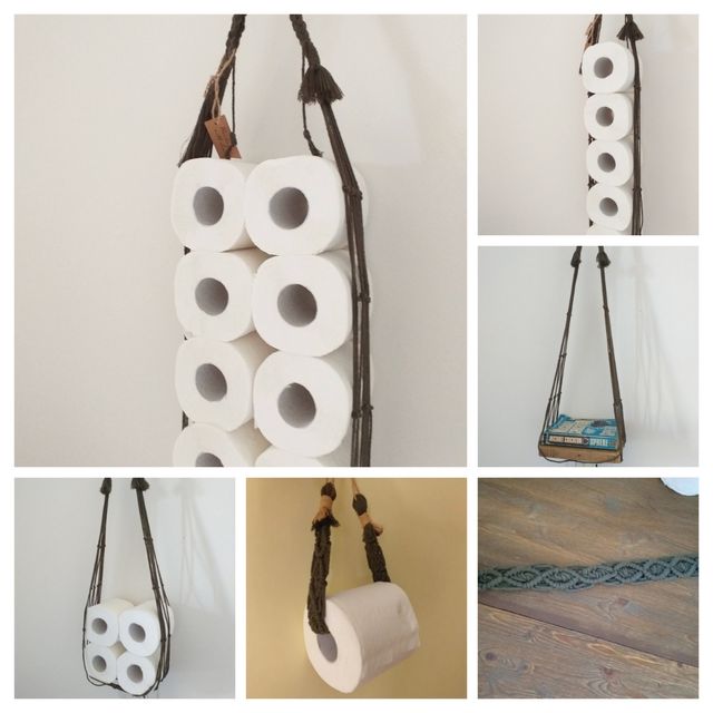 Dettagli del prodottoSet Porto rotolo carta igienica a muro | fatto a mano handmade artigianale macrame | Arredo casa bagno stile Country Rustico Boho.