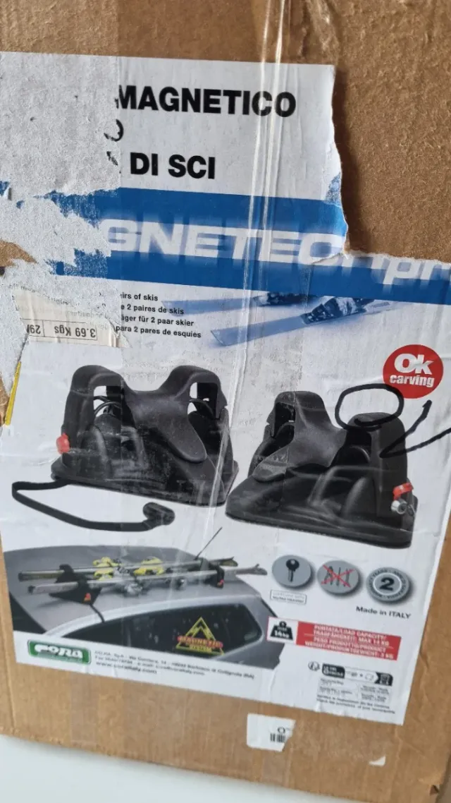 Dettagli del prodottoPortasci magnetico Cora Magnetech Pro, ideale per il trasporto di sci.