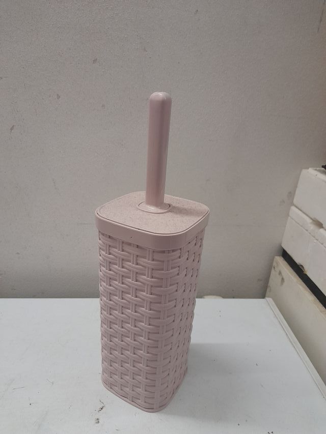 Dettagli del prodottoElegante portascopino per il bagno, con un design che ricorda la trama intrecciata. Il colore rosa aggiunge un tocco di delicatezza.