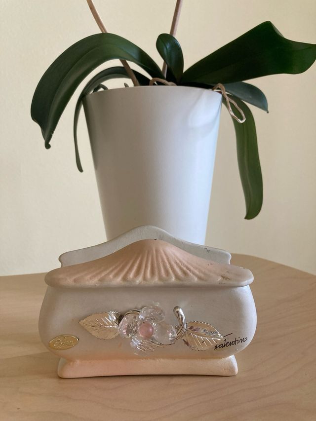 portatovaglioli in ceramica molto raffinato bianco e rosa misure 12 x 9