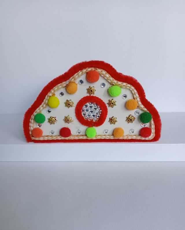 Portatovaglioli decorato a mano con applicazioni a rilievo tipici della cultura Siciliana.lunghezza cm.15 larghezza cm.5 altezza cm.8