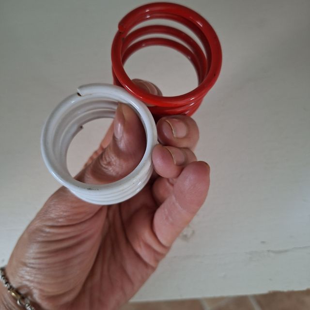 Portatovaglioli a spirale,anni 80, uno bianco e uno rosso.