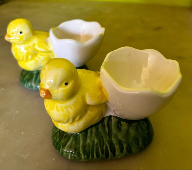 Dettagli del prodottoSet di due graziosi portauova a forma di pulcino in ceramica, perfetti per aggiungere un tocco alla tavola.