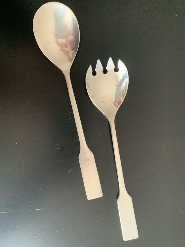 Dettagli del prodottoPosate da insalata placcate argento, raro il disegno del forchettone