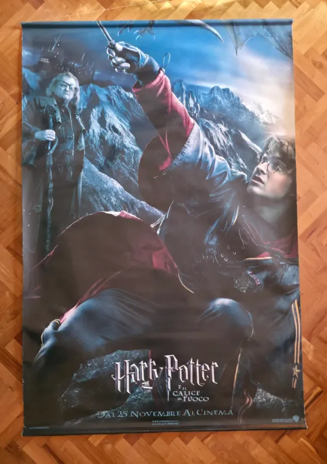 Dettagli del prodottoRarità per collezionisti! Vendo poster originale italiano distribuito nelle sale nel 2005 per l'uscita di "Harry Potter e il Calice di Fuoco". Raffigura Harry alla prima prova del Torneo Tremaghi con Alastor Moody.