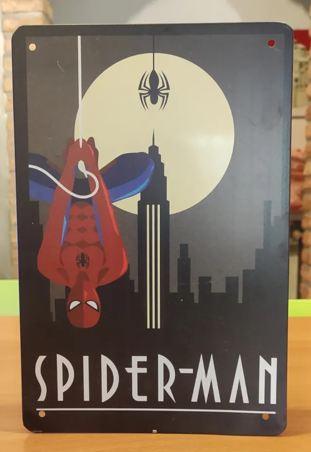 Dettagli del prodottoPoster decorativo in latta con grafica di Spider-Man.