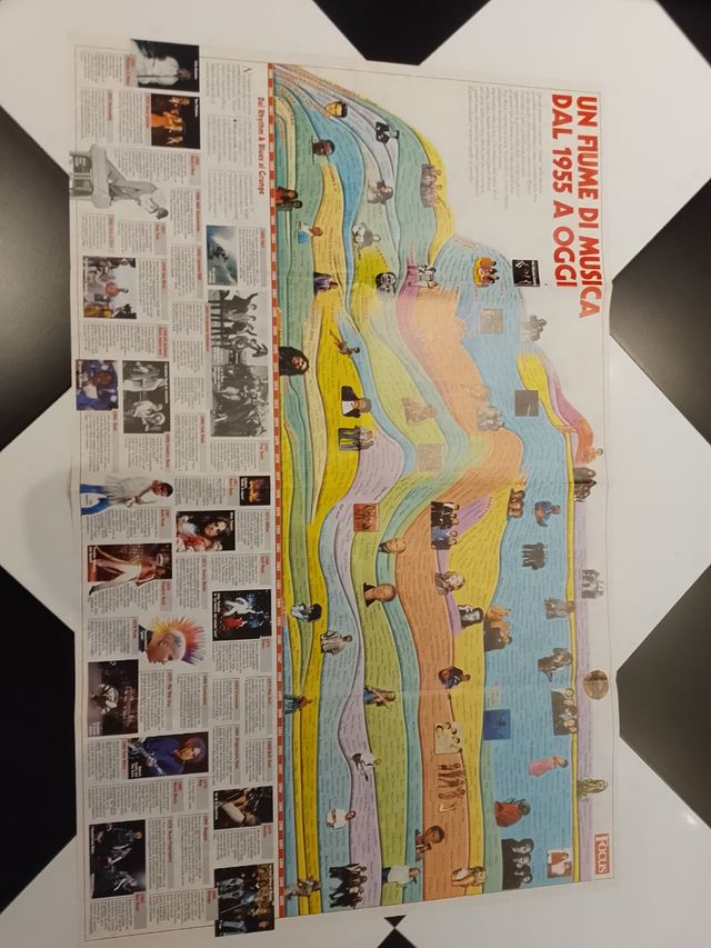 Poster di musica uscito nel 2003 con l'evoluzione della musica italiana e internazionale dagli anni 50 ai 2000 in perfette condizioni. Poster a doppia faccia... 85x55