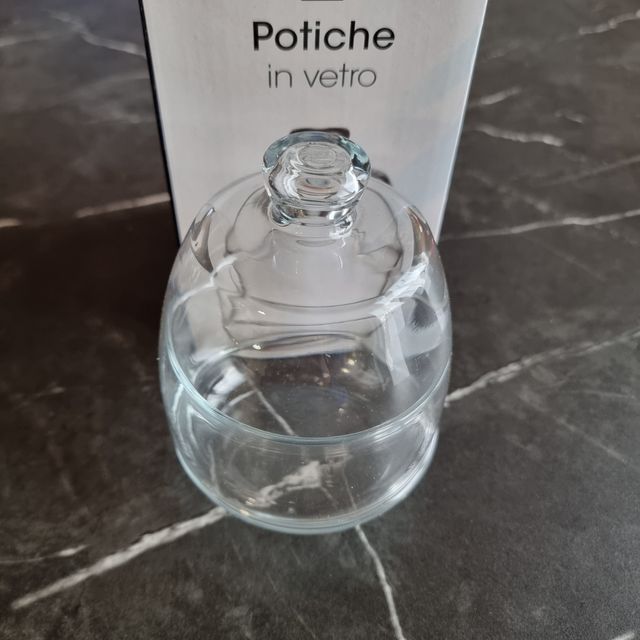 Potiche in vetro. Diametro 8 cm e Altezza 12 cm.