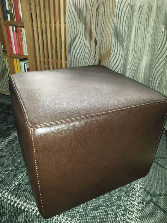 pouf di forma cubica, lato da 50 cm, in pelle martellata marrone scuro, come nuovo senza un graffio. natuzzi divani