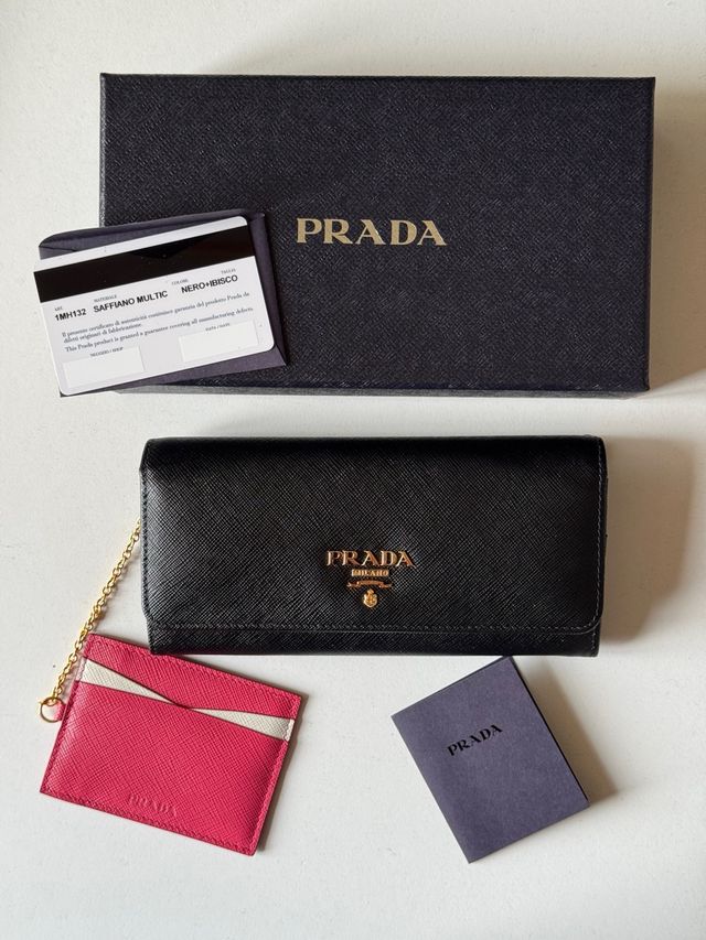 PRADA Portafoglio nero e rosa grande in pelle Saff