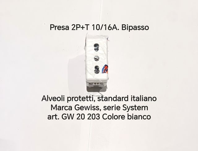 Dettagli del prodottoPresa 2P+T 10/16A. bipasso