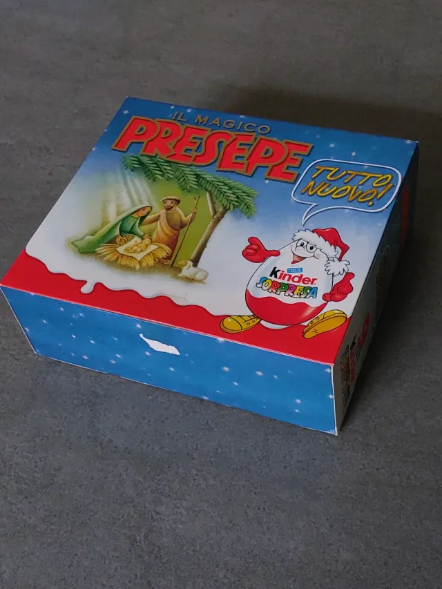 Dettagli del prodottoScatola del Presepe Kinder Sorpresa del 2001. Completo.