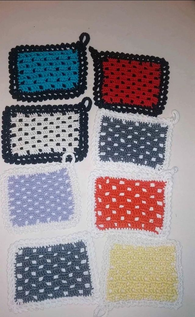 Presine uncinetto fatte a mano a doppio strato,a scelta euro 2 cadauno, vari colori e forme. Per qualsiasi informazione contattatemi.