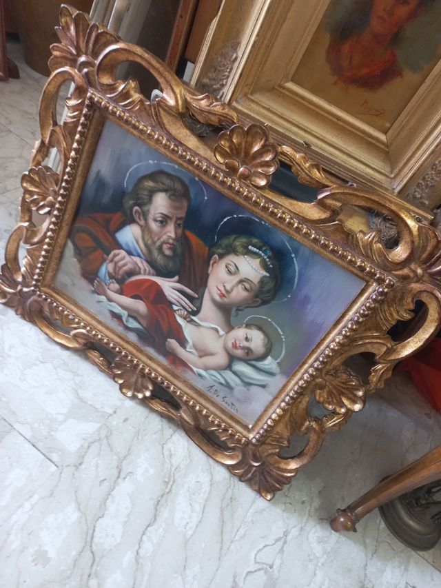 Dettagli del prodottoprestigioso quadro dipinto a mano ad olio su tela e firmato dall'autore Antonio De Santis.il quadro è incorniciato da una cornice in legno intagliato oro a foglia.le misure esterne sono cm 55 x cm 47.