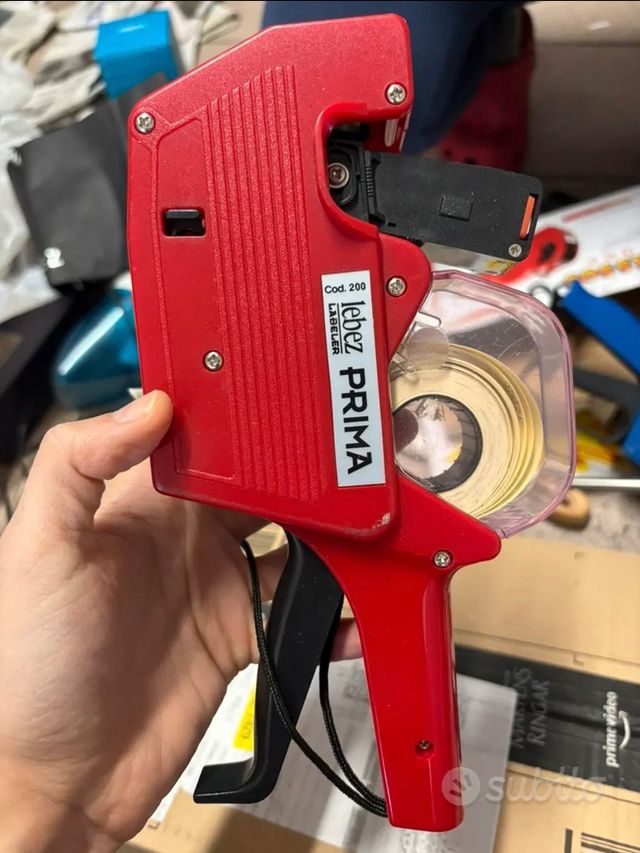 2 prezzatrici con scatole e rotoli di colore bianco e verde. Solo una è di marca LEBEZ