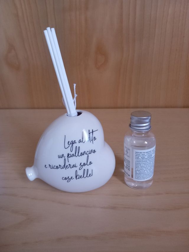Profumatore in ceramica bianca , con 4 steli e boccetta alla Vaniglia-Cannella. marchio Wald. Prodotto nuovo e in confezione originale.
