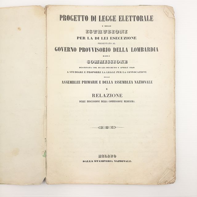 Dettagli del prodottoRaro e interessante progetto di legge elettorale e delle istruzioni per la di lei esecuzione presentato al governo provvisorio della Lombardia dalla commissione destinata col di lui decreto 8 aprile 1848: a studiare e proporre la legge per la convocazione delle Assemblee Primarie e della Assemblea Nazionale e Relazione della discussione della commissione medesima.