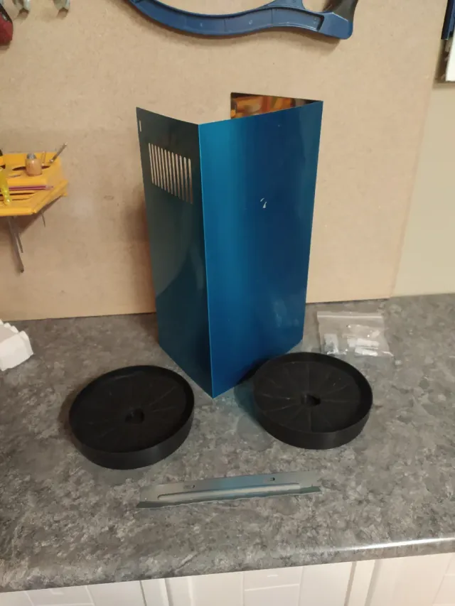 Dettagli del prodottoProlunga per cappa aspirante in acciaio inossidabile, completamente nuova. Design angolare con griglie di ventilazione. Include due filtri al carbone attivo (per cappe EVVO). Fornito con kit di montaggio completo di viti e tasselli. Misure nella foto finale. La descrizione è stata tradotta automaticamente.Misure del prodotto