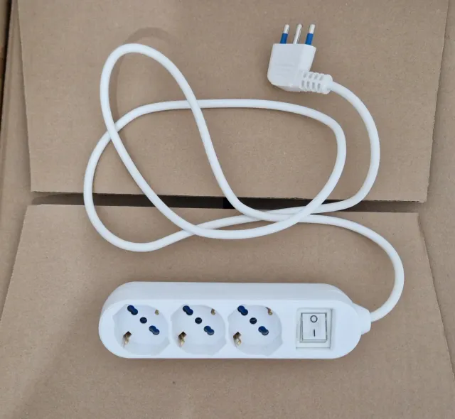 Prolunga elettrica bianca lunga 135 cm, dotata di interruttore per un facile controllo. - Tre prese universali. - Interruttore ON/OFF. - Spina europea.