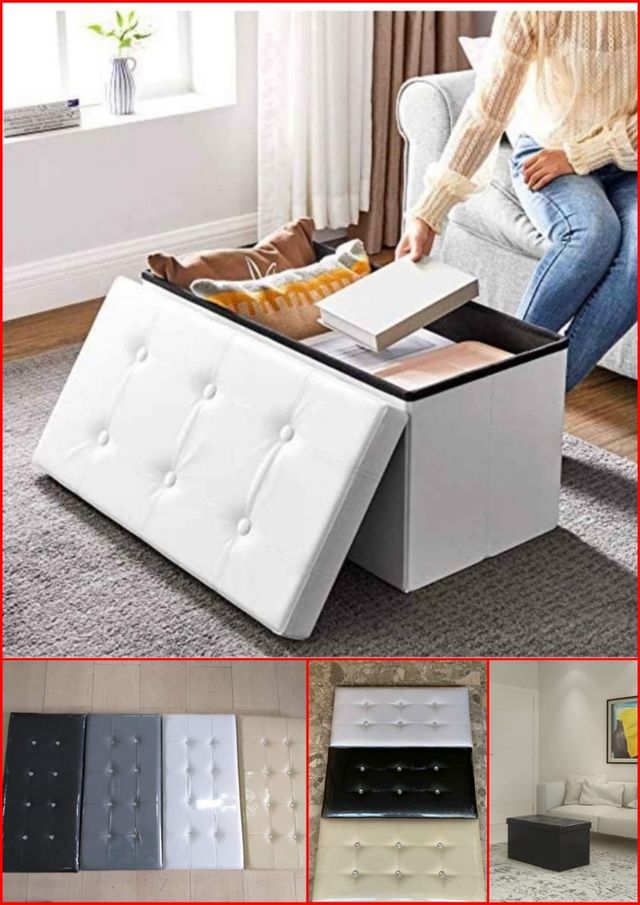 PUFF CONTENITORE ECOPELLE PANCA BAULE IMBOTTITO TRAPUNTATO ELEGANTE 7 COLOR