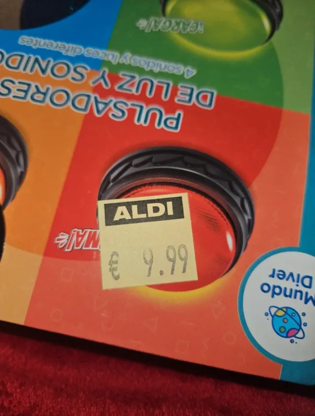 Set de pulsadores de luz y sonido de Aldi. - 4 sonidos y luces diferentes. - Precio original: € 9.99.