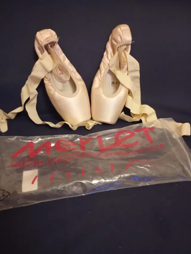 Punte da danza professionali Merlet. N.36 per bambina. - Modello: La Bayadère - Materiale: raso - Colore: rosa - Suola: flessibile