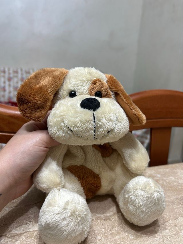 Pupazzo di peluche a forma di cane, con etichetta. - Morbido al tatto. - Dettagli marroni sulle orecchie e sul corpo. - Occhi neri e naso nero.