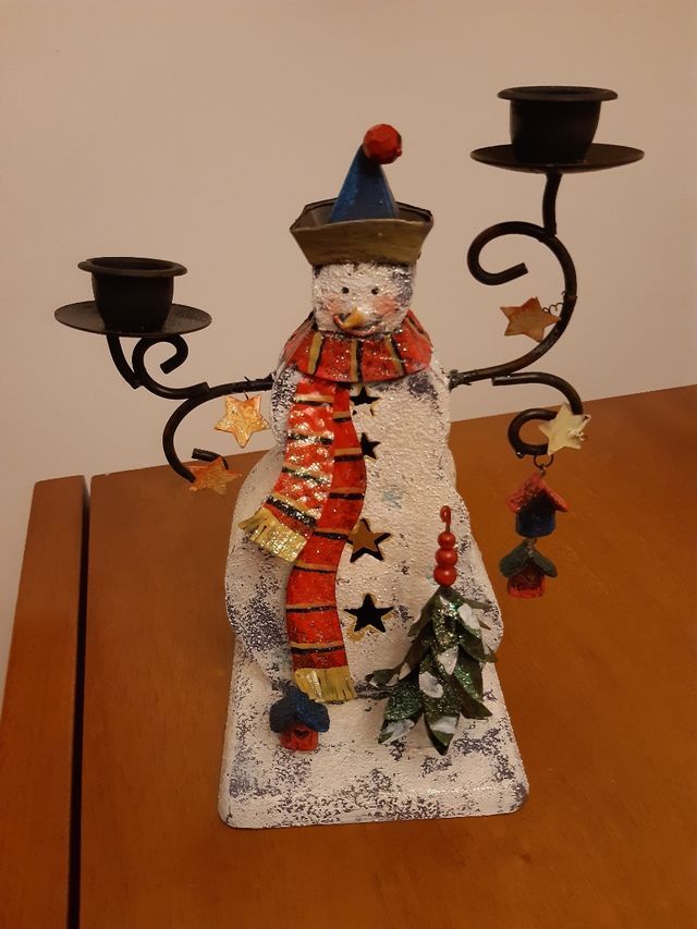 Vendo pupazzo di neve porta candele in latta. Alto circa 22 cm. Completo di scatola.
