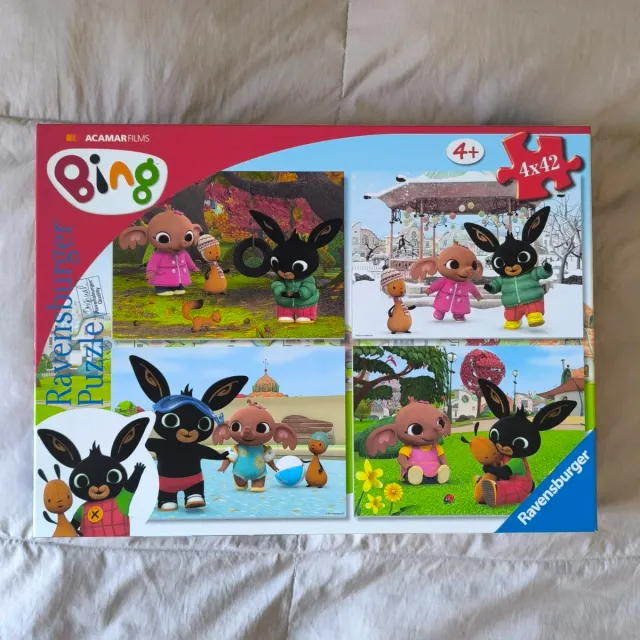 Puzzle del personaje Bing, ideal para los más pequeños. Contiene 4x42 piezas. - Personajes de Bing. - Marca Ravensburger. - Apto para mayores de 4 años.