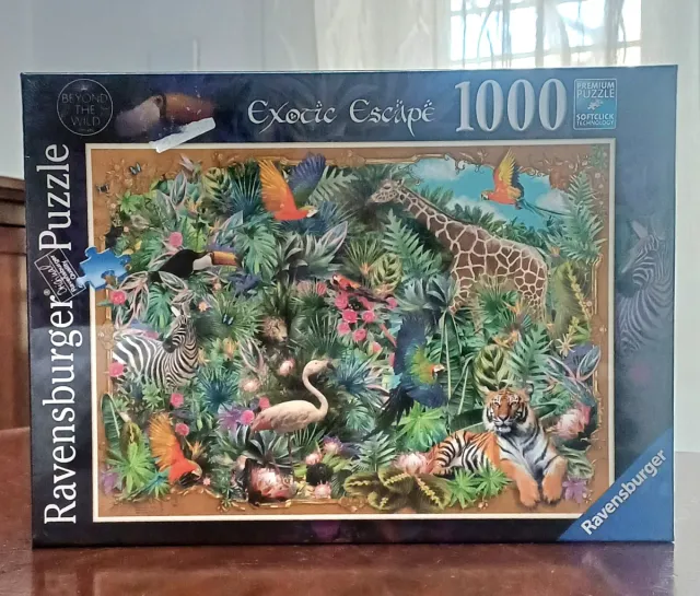 Dettagli del prodottoPuzzle Ravensburger Exotic Escape da 1000 pezzi, nuovo e sigillato.