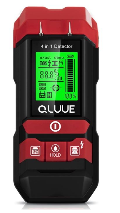 QLUUE 4in1Localizzatore di condotti e Misuratore di Umidità, Rilevatore Multifunzione a Scansione Pin a Parete,Legno/Metallo/Cavo CA, Misuratore di Umidità per Rilevamento di Umidità in Legno/Edilizia
