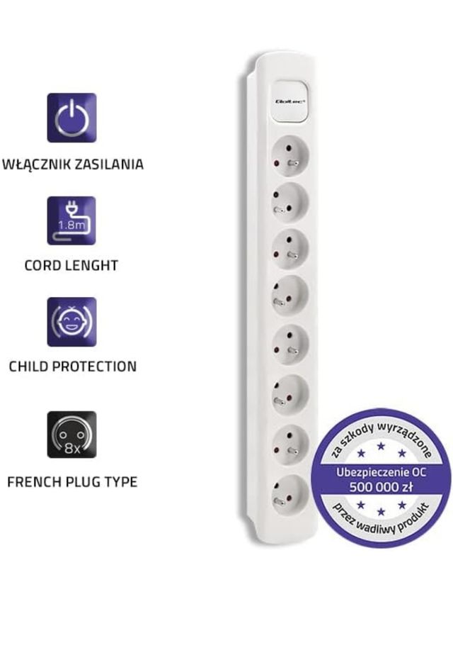 Dettagli del prodottoqoltec 50280 power strip 8 sockets francese.