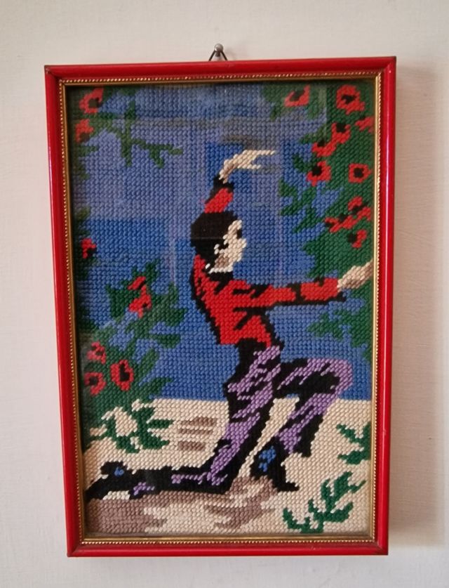 Due quadretti ballerini spagnoli a canovaccio cm 24,5 x cm 16,5. Cornice ballerina ha delle scorticazioni come si vede nella foto