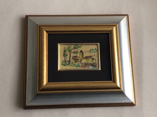 Quadretto dipinto su lamina dorata, cornice a sbalzo formato 17,5x20