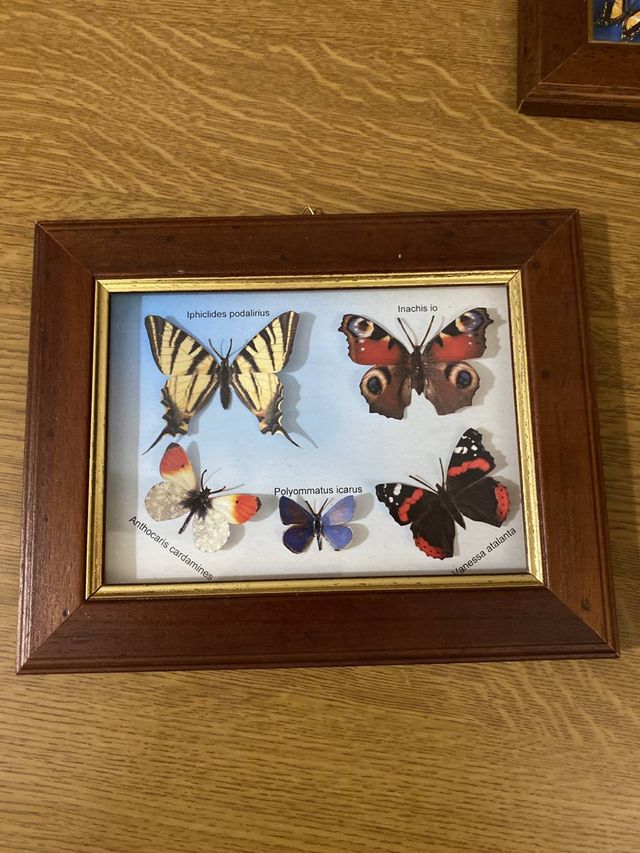 Dettagli del prodottoQuadretto con farfalle finte realistiche. Le farfalle sono riprodotte con carta dipinta al laser. Per ogni farfalla è associato il nome scientifico di quella vera. Misure del prodotto