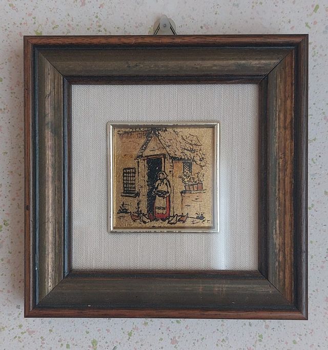 Quadretto con scena rurale su foglia d'oro 24 Kt