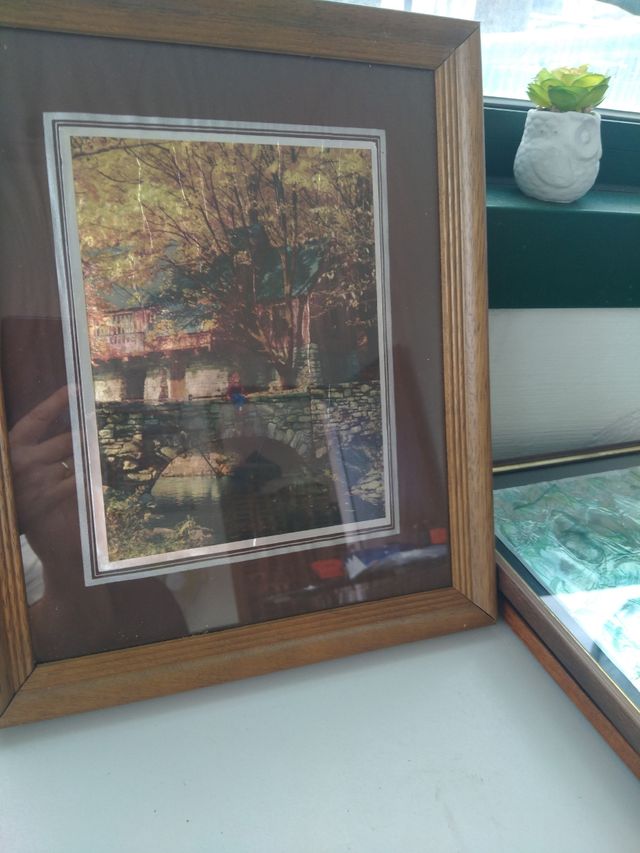 Bellissimo quadretto vintage con cornice in legno. - Misure: 27x34 cm. - Stile: paesaggio con ponte e alberi.